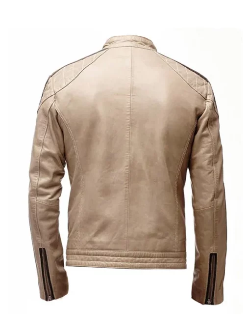 Mens Brown Cafe Racer Quilted Leather Jacket