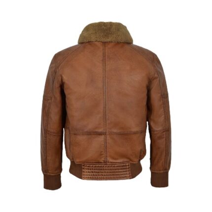 Men Aviator Leather Bomber Jacket with Fur Hood Brown