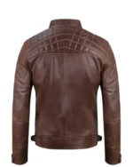 Mens Brown Cafe Racer Quilted Leather Jacket