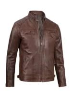 Mens Brown Cafe Racer Distressed Motorcycle Jacket