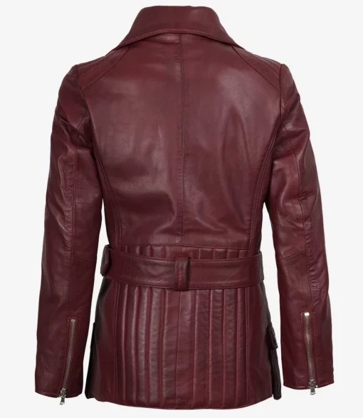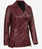 Women’s Asymmetrical Maroon Belted Biker Leather Jacket